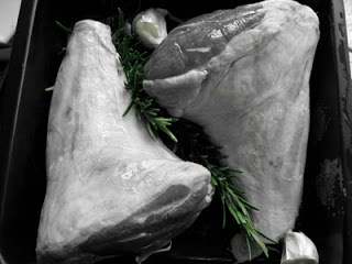 Fresh rosemary from the garden tucked in and around, a couple of garlic cloves, a grind of Maldon sea salt and a drizzle of olive oil is all that was needed. 1 1/2 hours at 170C, with one turn, and they were done. If I had time I would cook them at a lower heat for longer, but it was a work night so I didn’t have time. They still tasted very nice though.