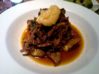 Col opted for the Confit Duck with Red Cabbage, Spiced Orange and Beetroot Salsa. I chose the Braised Mutton, with Pink Fir potatoes and Stewed Quince.
