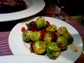 The mutton was rich, and deeply satisfying, and there was so much of it too! They had used rosemary and mint together, which in other things might have been too much but the hit of a shred of fresh mint every so often added a zing that kept a very rich meat dish light tasting and easy on the palate. The quince worked with the meat extremely well indeed. A slightly grainy texture which contrasted nicely with the velvety mutton. Light tasting it might have been, yes, but there was too much for me to manage on my own so poor Col had to help me out. Looking back now I should not have ordered the side dish but dammit it was sprouts with honey and pancetta. I could not resist. My only complaint was the they could have been cooked a smidge longer, but each to his own taste with sprouts. Seggiano Chestnut Honey would have been amazing with them, but that’s hardly locally sourced.