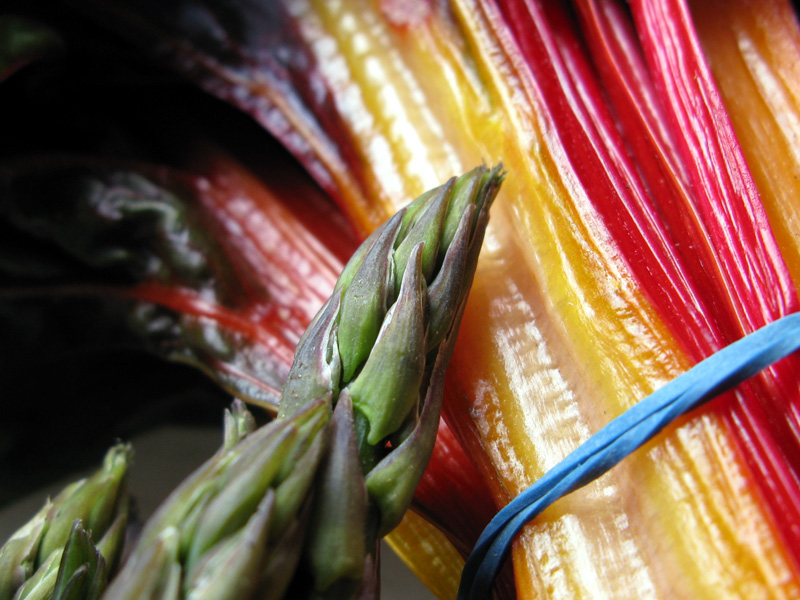 Rainbow chard and fresh asparagus – also from the farm shop. How could I resist snapping up a bundle of these lovely fellows?