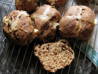 Then I tried another one, with different yeast – dried but not the fast action one – and they were better. I used wholemeal strong bread flour so they were heavy, but tasty. I used golden marzipan to make the crosses and that was incredibly nice but I still wasn’t satisfied.