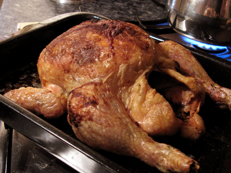 The smell of this whilst it cooked drove me nuts. I couldn’t wait for it to be ready, and suddenly, it was. The flesh came away from the bones beautifully and I got to lick all the sticky juices off my fingers. Cook’s perks, along with the ‘oysters’ that you find underneath the bird. And yes, I did wash my hands before serving the dinner up to anyone else.