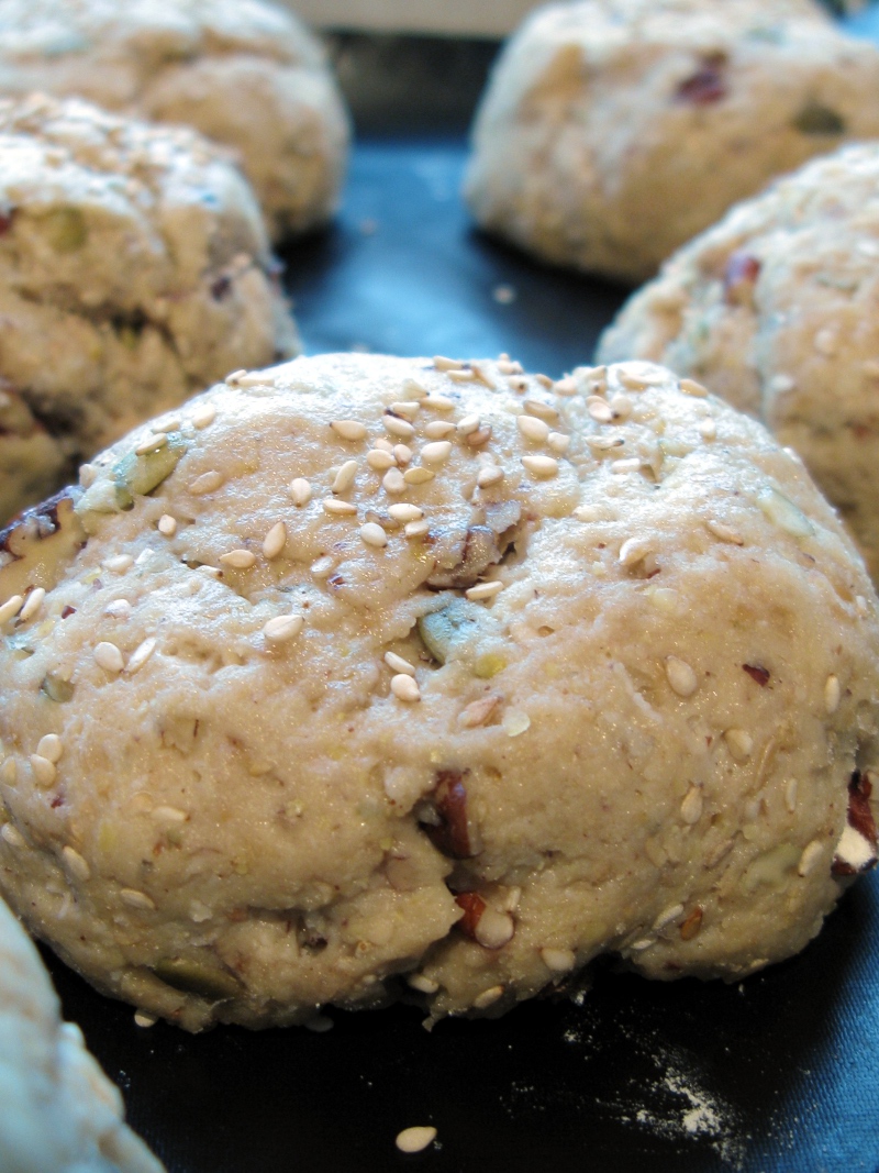 The rolls had toasted pecan nuts, toasted sesame seeds and pumpkin seeds in them.