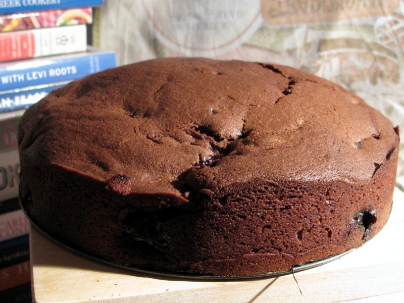 I looked in Rachel Allen’s ‘Bake’ and there it was. A plain and simple recipe for a chocolate cake using melted chocolate and cocoa. I had all the ingredients so off I went.