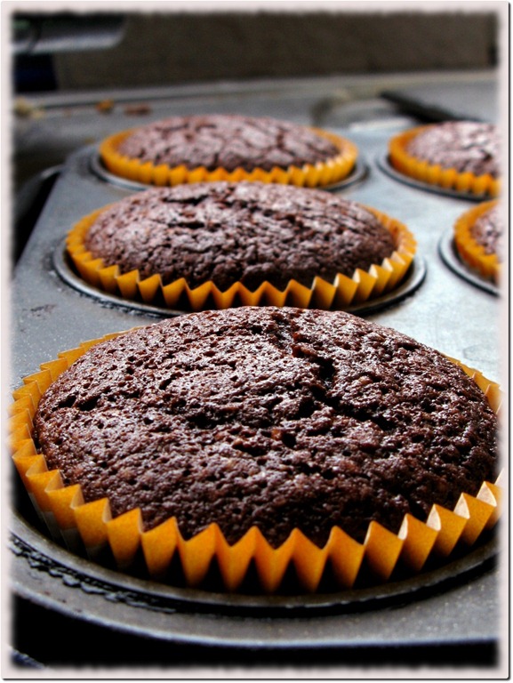 Last week I made the American Vanilla Cupcakes. They use finely grated courgette and are very light, very sweet but even though the recipe absolutely works, they didn’t quite hit the spot for me. They were almost too eggy, but then again I have a bit of Thing about too much egg in recipes. I will try them again, but use some ground almonds next time to give them a little more body.  However, not one to be put off, I decided to try again today and found a recipe for Chocolate and Peanut Butter Cupcakes. I had most of the ingredients, but I did have to make a few tweaks to make up for the things I didn’t have.