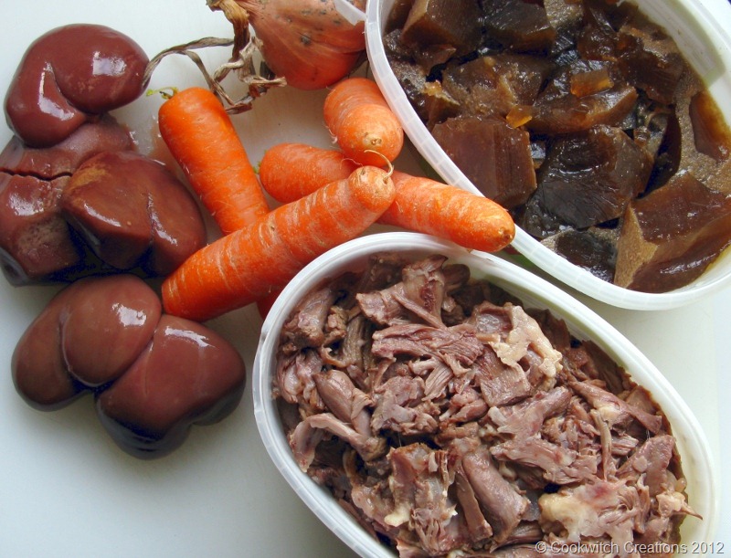 I added in finely chopped carrots and crushed garlic, then when the carrots started to soften I popped in the chopped kidneys and all of the tail meat. Warning: oxtail meat congeals when cold, so when you try to tip it in what you get is a girt great lump of coobeastie  that falls in to the pan, so be careful of the oil that splashes back out at you. Don’t say I didn’t warn you.