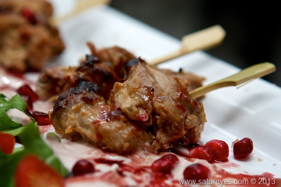The next dish was chicken with pomegranate molasses on mini skewers, served on a bed of yoghurt. I couldn’t hear what else was in there, but I will find it in the book, because my goodness it was delicious. Tangy and yet mellow at the same time. Lovely, and very moreish.