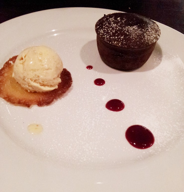 Simon had a Chocolate Fondant with Amaretto Ice Cream.