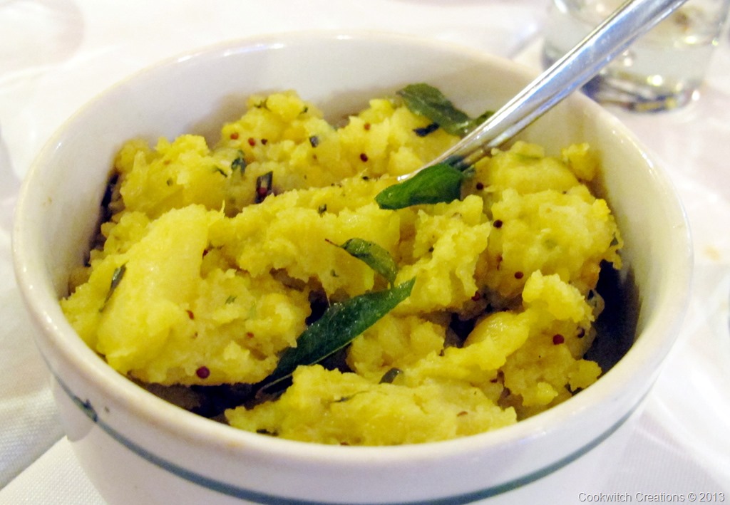 Potato Dosa Bhaji – also very light, intense potato flavour, and gentle with nutty white lentils, mustard seeds and fragrant curry leaves.