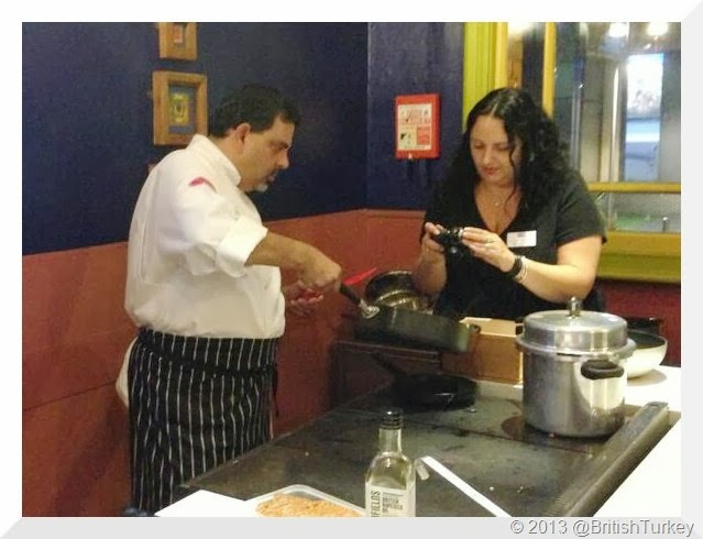 The next dish was a kofte using minced turkey. At this point I gave up being sedate and went up to the cooking stage to get in closer with my camera. Cyrus very obligingly held the pan for me so that I could take a shot! Photo courtesy of @British Turkey there. Sneaky.