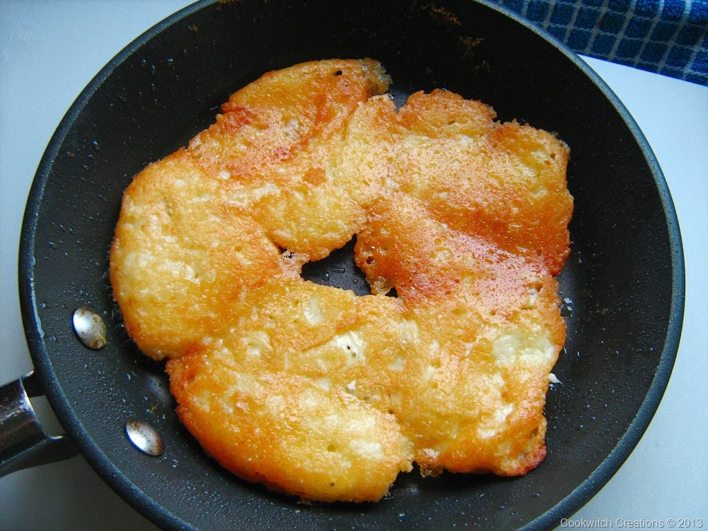 Perhaps it will taste okay, thought I, and proceeded along with my sandwich. Getting it out of the pan was interesting as bits just slowly and stringily fell off if you tried to lift it out. Eventually I just tore