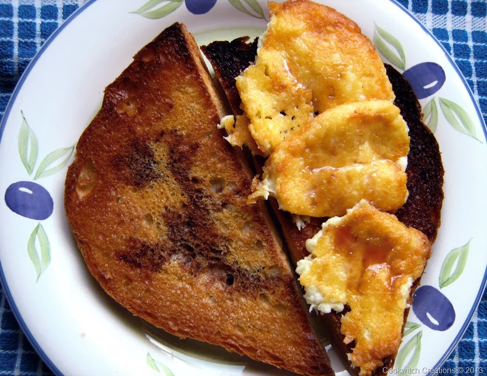 It didn’t smell halloumi-like either. In anticipation of extra saltiness, I added some gorgeous, sticky sweet blackberry vinegar that was a present from my friend Lynne. That and the balsamic on the bread really cut through the slightly greasy feel of the cheese and saved my lunch.