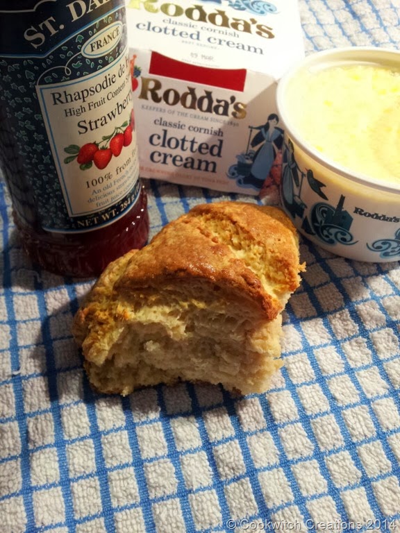 Today though…I had found some Rodda’s clotted cream, and wanted scones. I wasn’t going to buy them, as the shop bought ones usually have way too much bicarbonate of soda in, and I really do not like the taste of that, so the only way was to make them myself and adjust the quantities. I wondered if the processor would work the dough too much, so I just pulsed the butter and flour, then did the rest by hand.