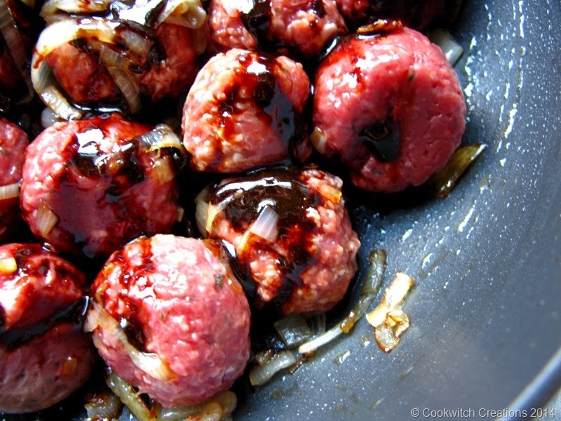 Fry them in some olive oil until they start to soften and brown at the edges, then add in the meatballs and some of the reduction.