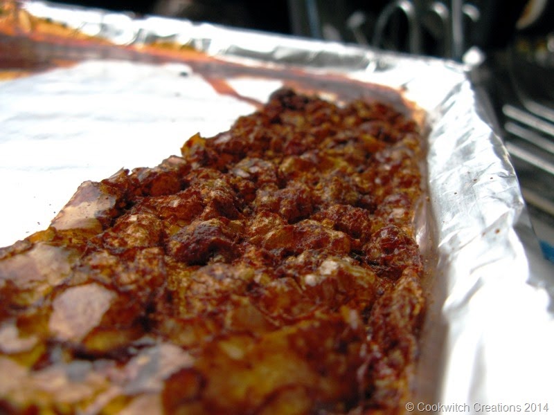 Pour the sauce into the lined tray and bake on about 160C until it looks like this.
