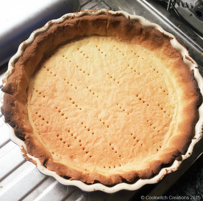 Put baking parchment in, (I scrunched it up foist so that it was more malleable)filled with lentils and baked blind for 15 minutes, then removed the lentils and baked for another 15. That SHOULD have been another 5, but I misread the recipe because I was over-excited.