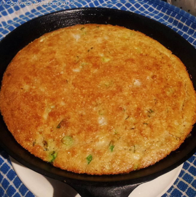 Pour into well greased baking dish (I use a 7” diameter cast iron pan), then bake for 20 minutes or until edges begin to brown.