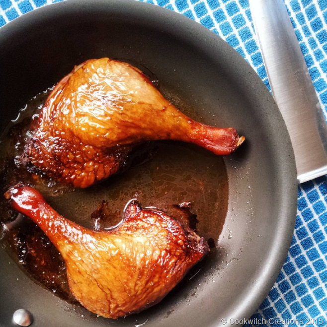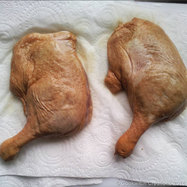 Pour 2.5 pints boiling water (you need enough liquid to immerse the duck legs) over the marinade ingredients, then let it infuse until it’s properly cooled down.