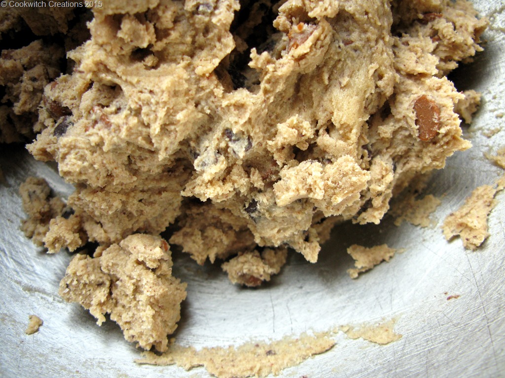 Roll into balls (I basically just squidged the cookie dough into round shapes) and place on the baking tray. Space well apart, as they spread.