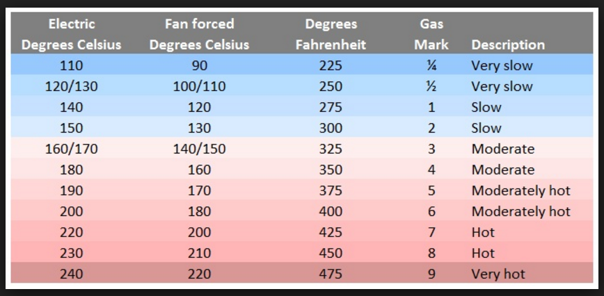 The recipe called for a moderate oven *rolls eyes* so here’s a useful table: