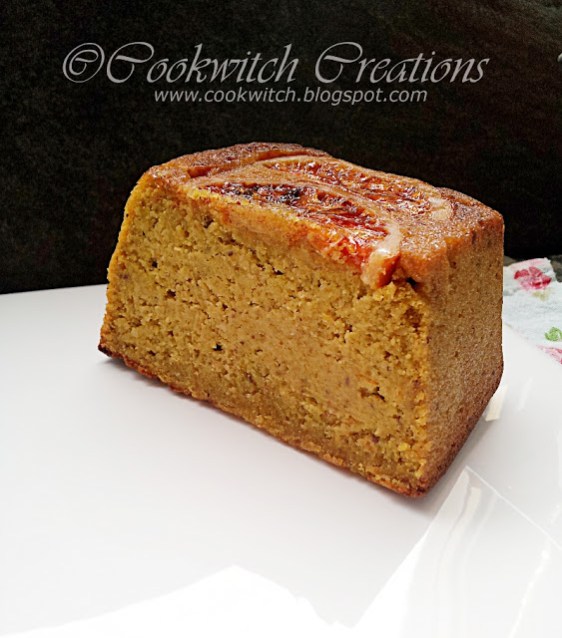 When cool, cut in half, detach them from the knife blade, unstick them from your fingers again *sigh* and lay some along the bottom of your loaf pan. (I used a silicone mould to line my loaf tin, and sprayed that mould with non stick baking spray. Yes, the slices still stuck to it.)