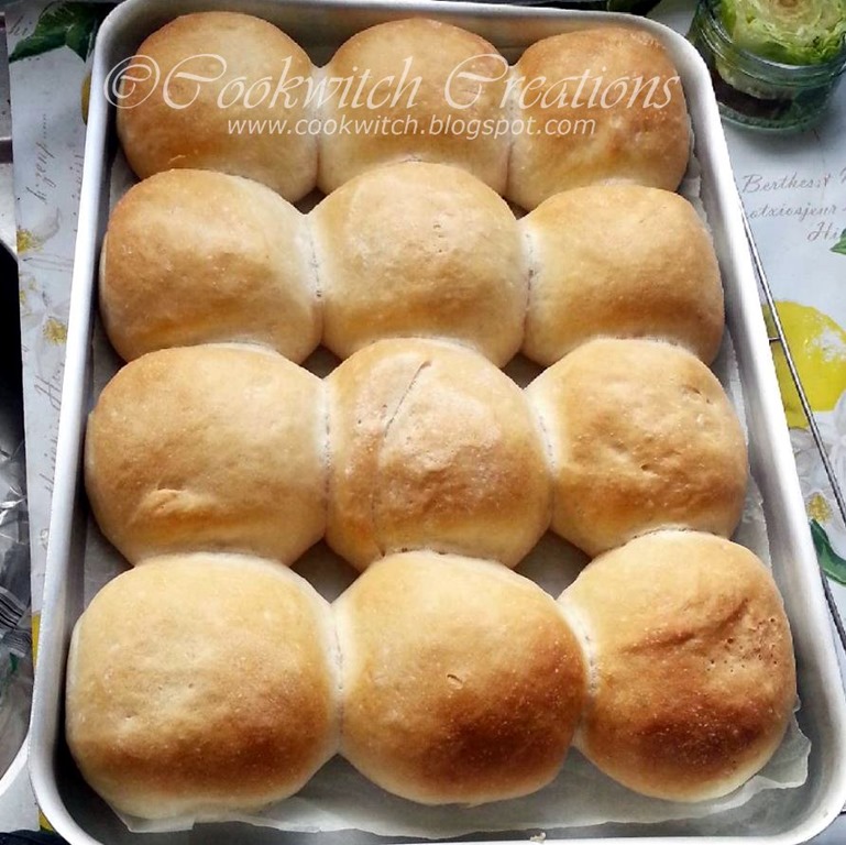This week I decided I wanted to bake some rolls to go with some Turner and George burgers on Friday and some Cookwitch-made burgers on Saturday. I’m not a huge fan of brioche style buns, simply because they can get a bit soggy too fast. I wanted white, soft rolls, but fairly substantial.