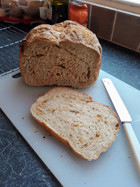 For this loaf I popped it into a small, round cake tin with high side, that I’d lined with non stick foil.