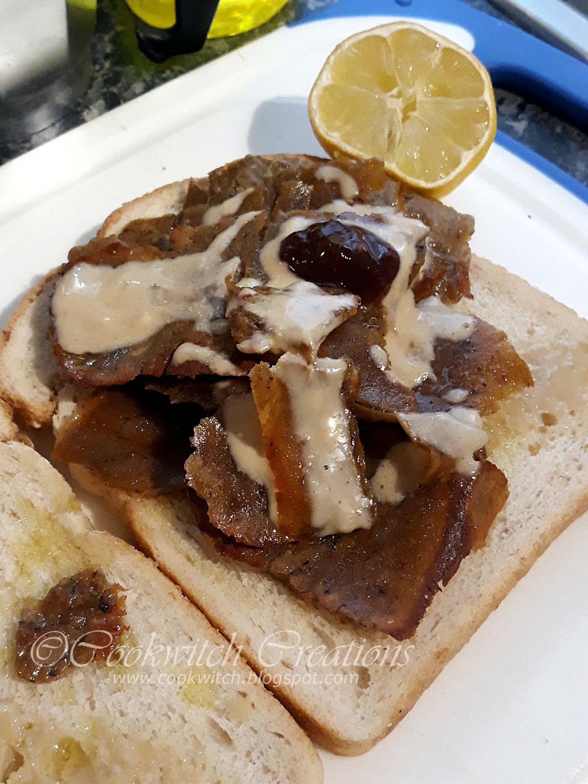 I’m not a fan of doner meat, not because of the ears/noses/toes nonsense, but because on occasion there’s a wee bone chip and OW MY TOOTH, but I do like the flavours, so I thought I’d put those into a setain dough and see how it turned out.