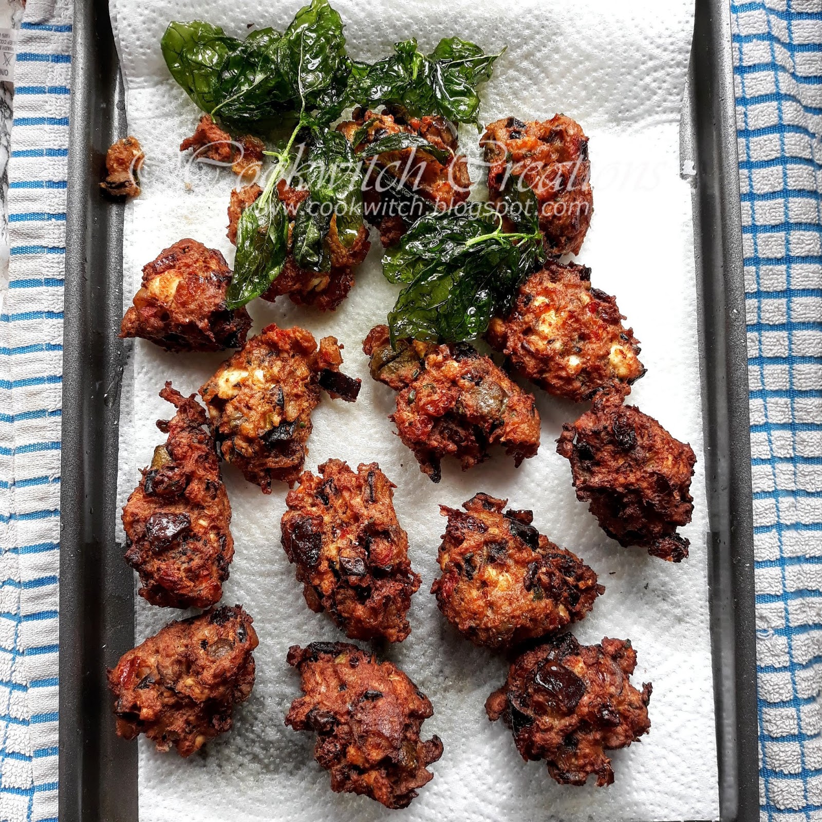 Drop a rounded dessertspoonful at a time gently into the oil, no more than 5 or you will cool the oil too much, and then them sit, agitating the oil every so often so they don’t stick. Don’t panic if little bits drift off, those are crunchy treats!