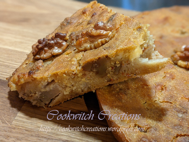 Having enjoyed the original so much, I had a hankering for that slightly grainy cornmeal batter again. My thought process went thus: grainy, hmm…ooh, pears have that texture too. Might add some. Do I want sweet? No. Savoury. Definitely savoury. Pears. Cheese. WALNUTS.