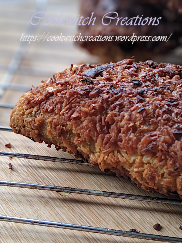 Dip each pocket in the slurry, then press into the coconut.