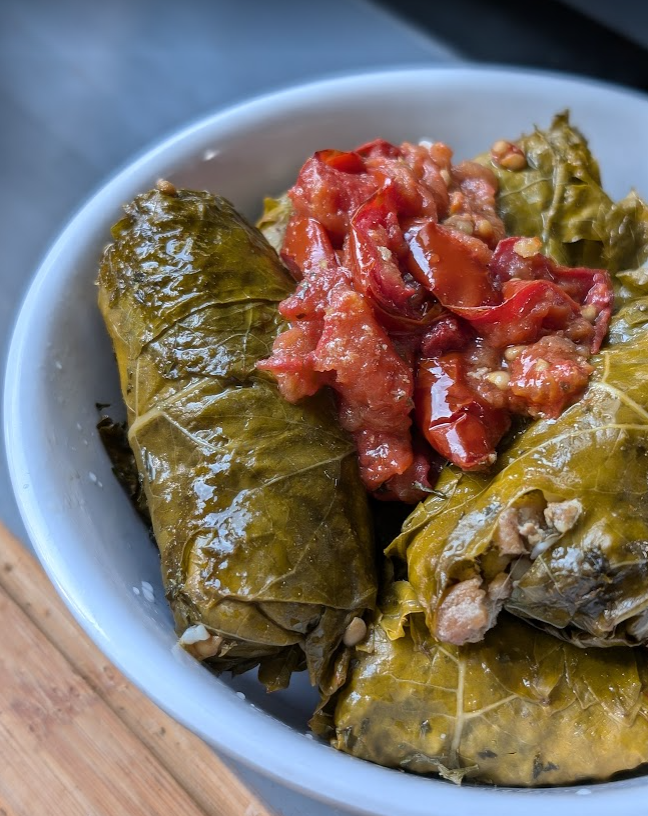 I had fresh vine leaves a friend gave me. There was only one thing to do, really!