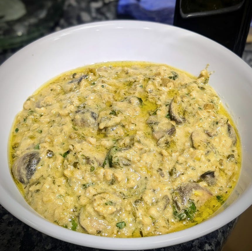Returning from my galumphing about, and having watched a Greek YouTube channel (It’s called Holy Cherry and she cooks some lovely things, plus you get to see Greece so…) I was very taken by a mushroom and tahini soup. Now. When I say taken, I mean my brain will literally not rest until I have made this recipe.